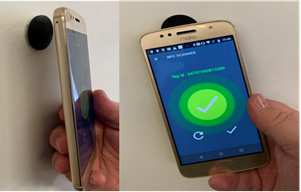 Scanning a tag fixed to equipment confirms the machine been worked on, a delivery site, a pick up site.